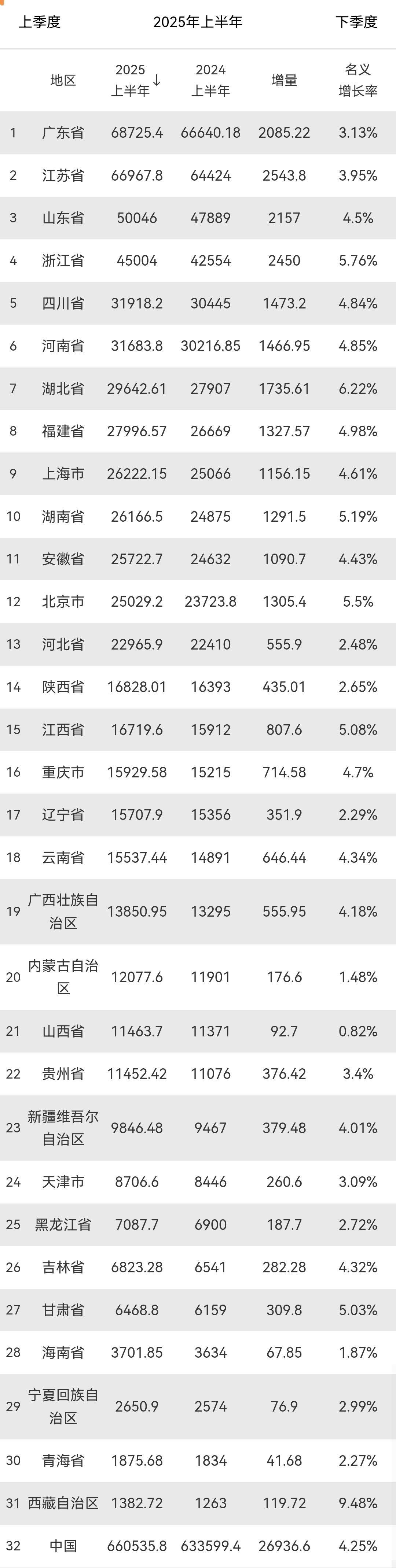 探索2025年顶级加密货币赌场,支持USDT、比特币等数字资产投注。精选去中心化赌场,提供安全、公平、匿名的博彩体验。立即查看USDT博彩网站推荐,畅玩百家乐、体育竞猜、老虎机等热门游戏,体验区块链博彩的无限可能!2025年上半年经济数据披露,全国31省区市交出了亮眼答卷。广东省以68725.4亿元继续领跑,江苏、山东分别以超6.6万亿和5万亿的成绩稳居前三甲。中部地区表现尤为抢眼,四川以31918.2亿元GDP险胜河南31683.8亿元,两者差距仅234.4亿元。湖南更以26166.5亿元历史性突破2.6万亿大关,贵州则以11452亿元稳定在22位,区域协调发展显现新气象。