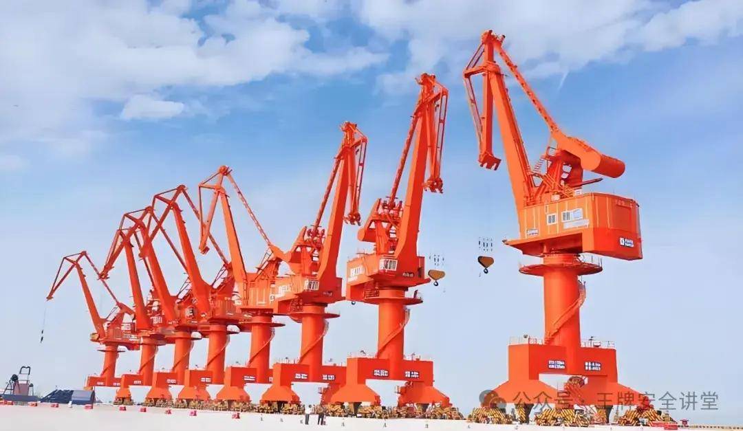 门式起重机是桥式起重机的一种变形。在港口,主要用于室外的货场、料场货、散货的装卸作业。它的金属结构像门形框架,承载主梁下安装两条支脚,可以直接在地面的轨道上行走,主梁两端可以具有外伸悬臂梁。龙门式起重机具有场地利用率高、作业范围大、适应面广、通用性强等特点,在港口货场得到广泛使用。